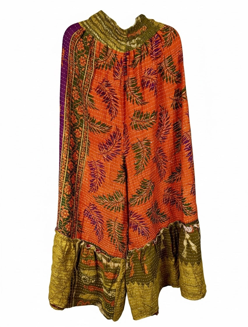 Our vintage styles have lived a full life before becoming the designs in our shop. Fabrics may have small threads or holes in the layers. Color inconsistency or small stains may be present. The saris are sewn together and extend the life of each design. Imperfections should be celebrated.