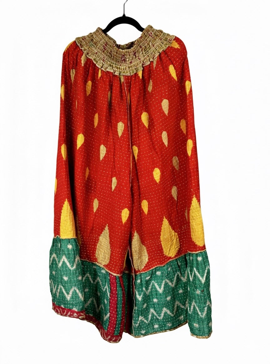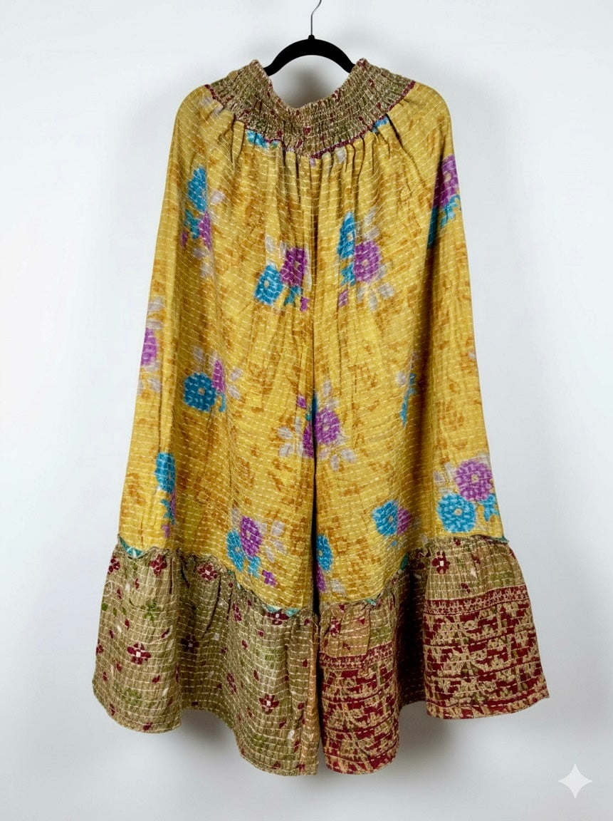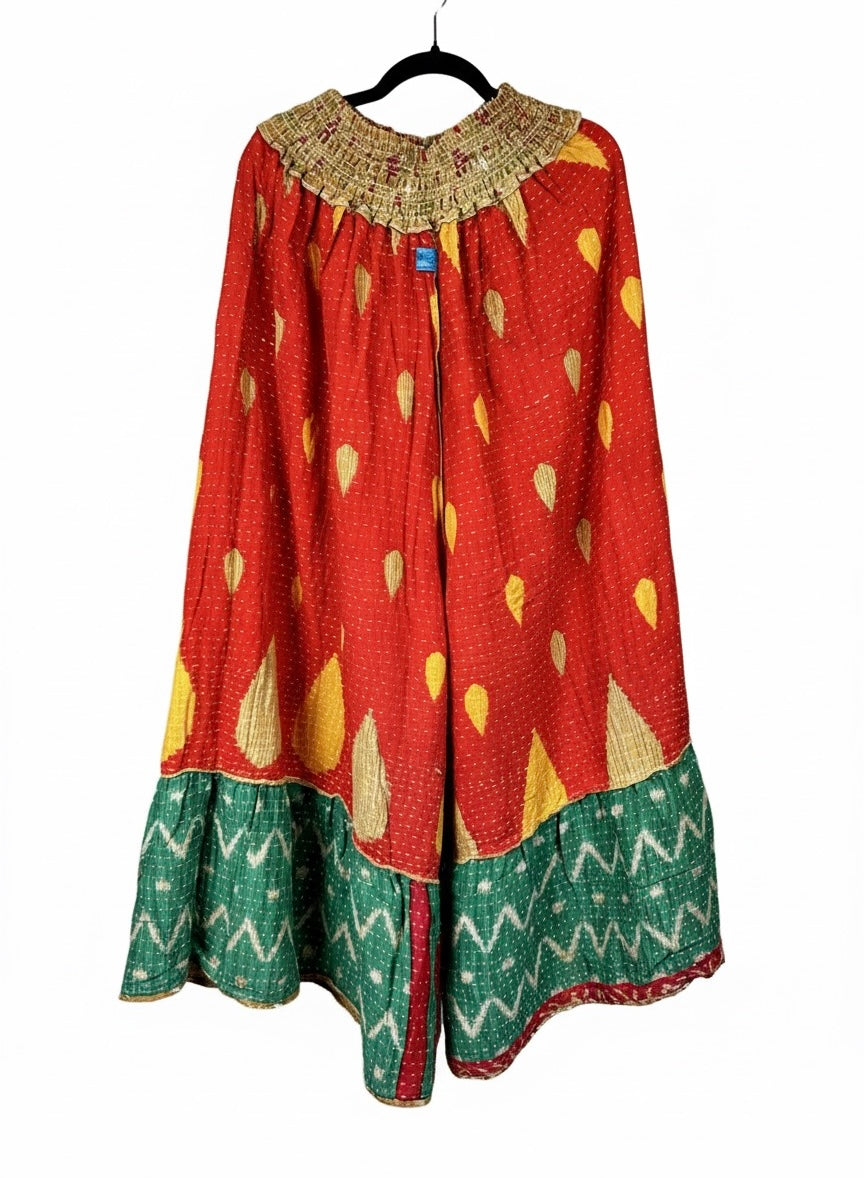 Our vintage styles have lived a full life before becoming the designs in our shop. Fabrics may have small threads or holes in the layers. Color inconsistency or small stains may be present. The saris are sewn together and extend the life of each design. Imperfections should be celebrated.