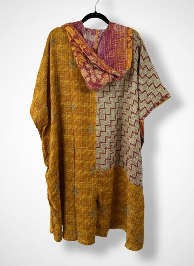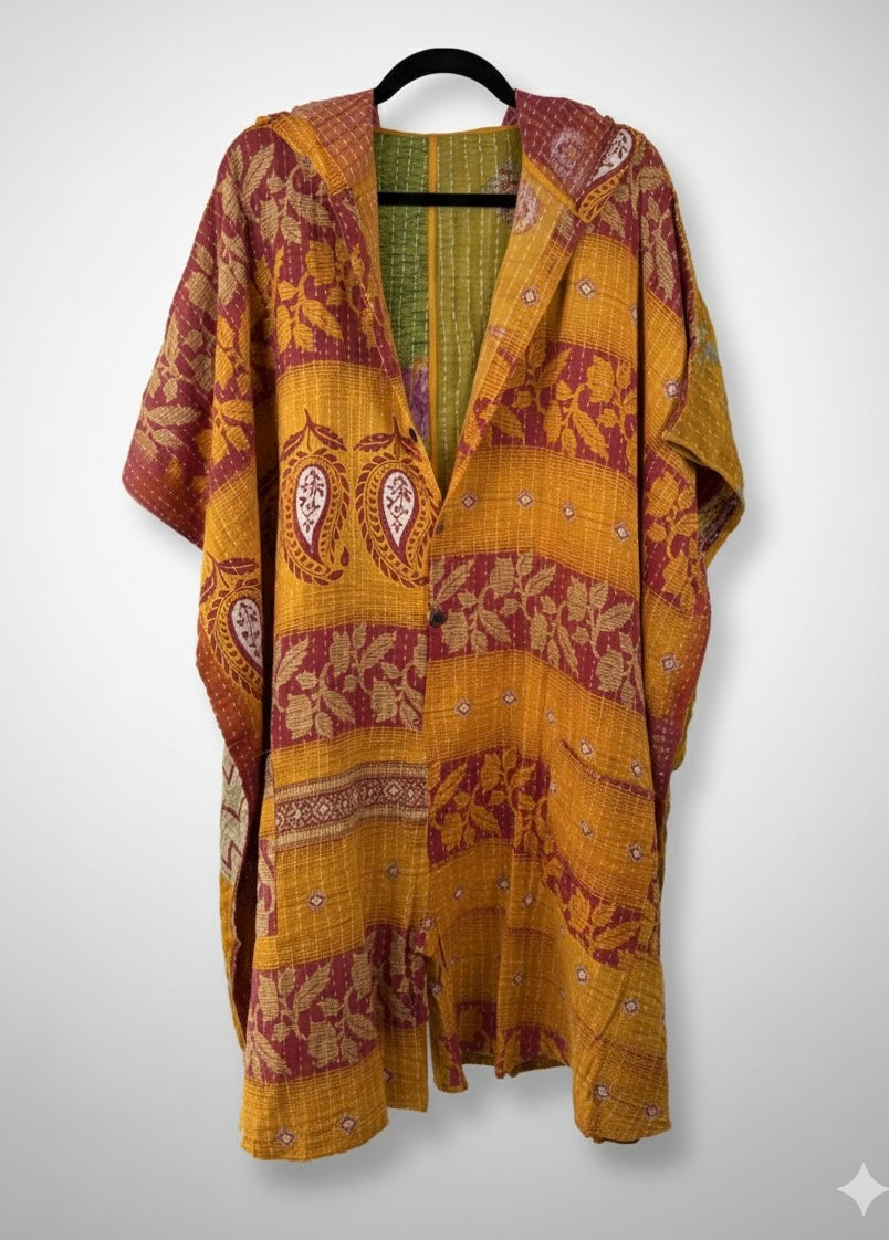 Our vintage styles have lived a full life before becoming the designs in our shop. Fabrics may have small threads or holes in the layers. Color inconsistency or small stains may be present. The saris are sewn together and extend the life of each design. Imperfections should be celebrated.