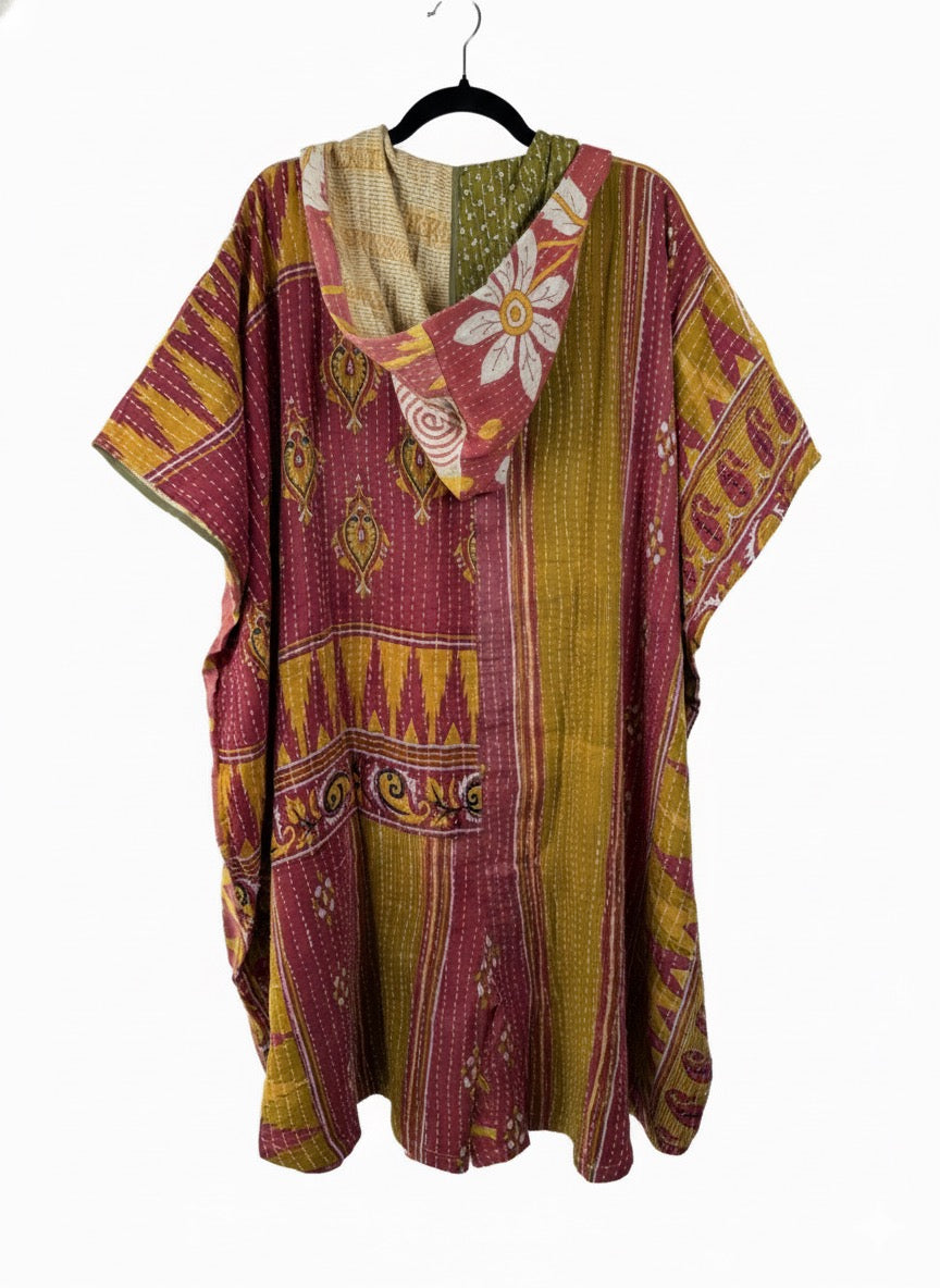 Our vintage styles have lived a full life before becoming the designs in our shop. Fabrics may have small threads or holes in the layers. Color inconsistency or small stains may be present. The saris are sewn together and extend the life of each design. Imperfections should be celebrated.