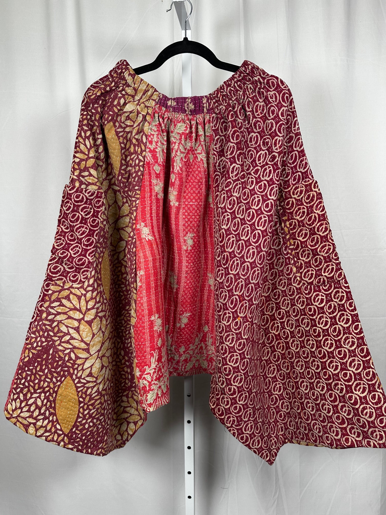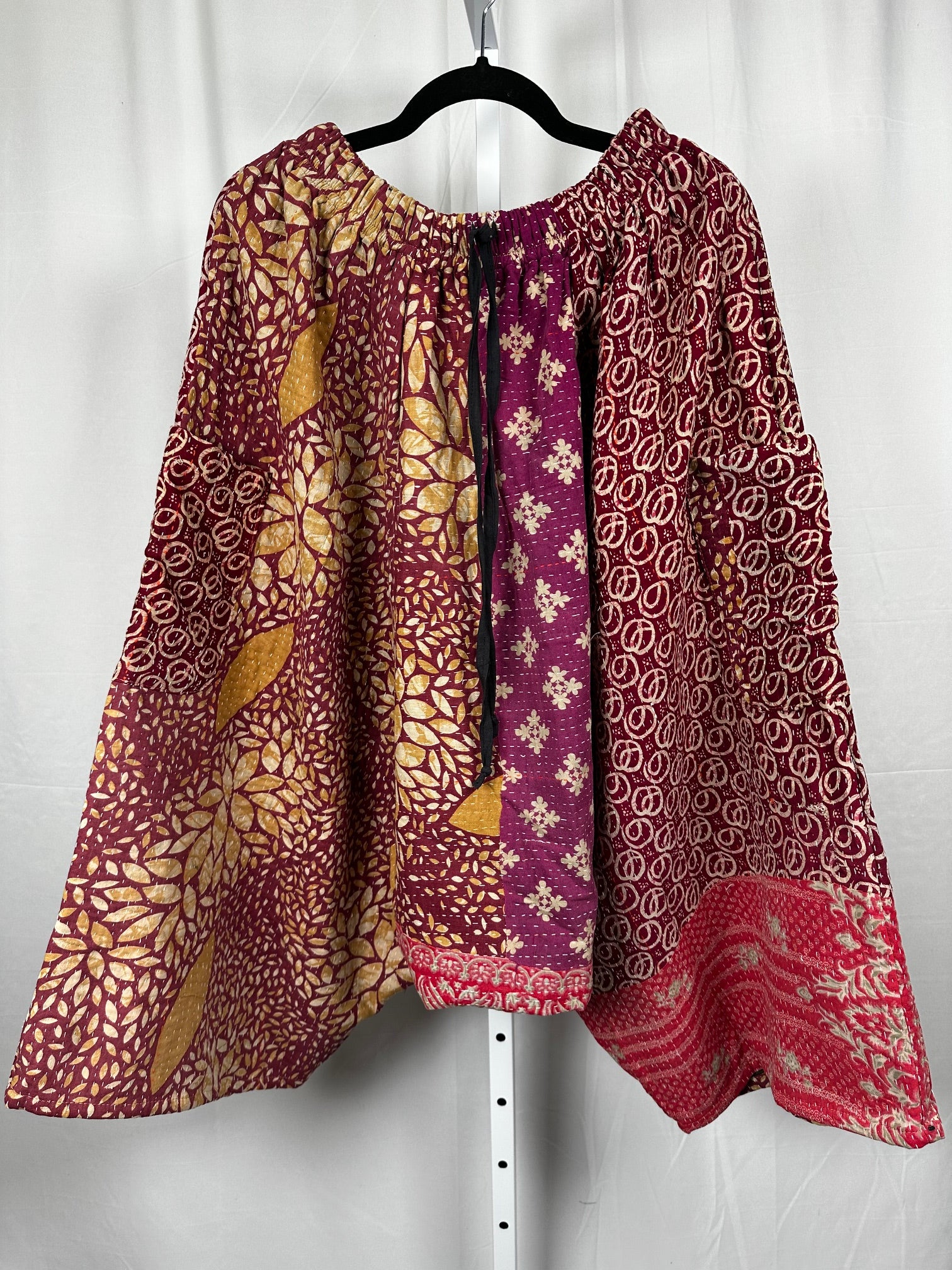 Our vintage styles have lived a full life before becoming the designs in our shop. Fabrics may have small threads or holes in the layers. Color inconsistency or small stains may be present. The saris are sewn together and extend the life of each design. Imperfections should be celebrated.
