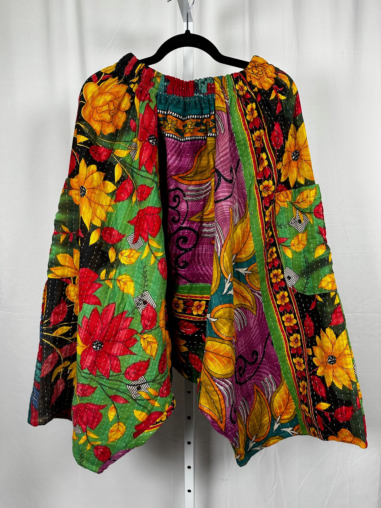 Our vintage styles have lived a full life before becoming the designs in our shop. Fabrics may have small threads or holes in the layers. Color inconsistency or small stains may be present. The saris are sewn together and extend the life of each design. Imperfections should be celebrated.