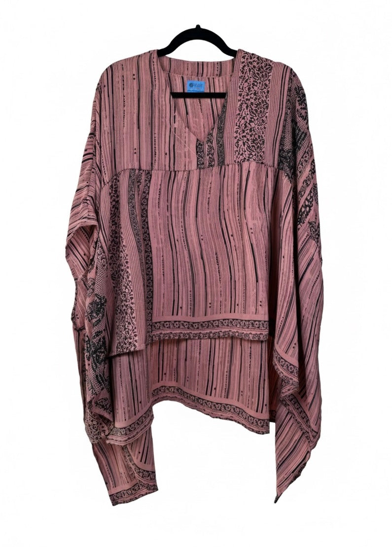 Our vintage styles have lived a full life before becoming the designs in our shop. Fabrics may have small threads or holes in the layers. Color inconsistency or small stains may be present. The saris are sewn together and extend the life of each design. Imperfections should be celebrated.