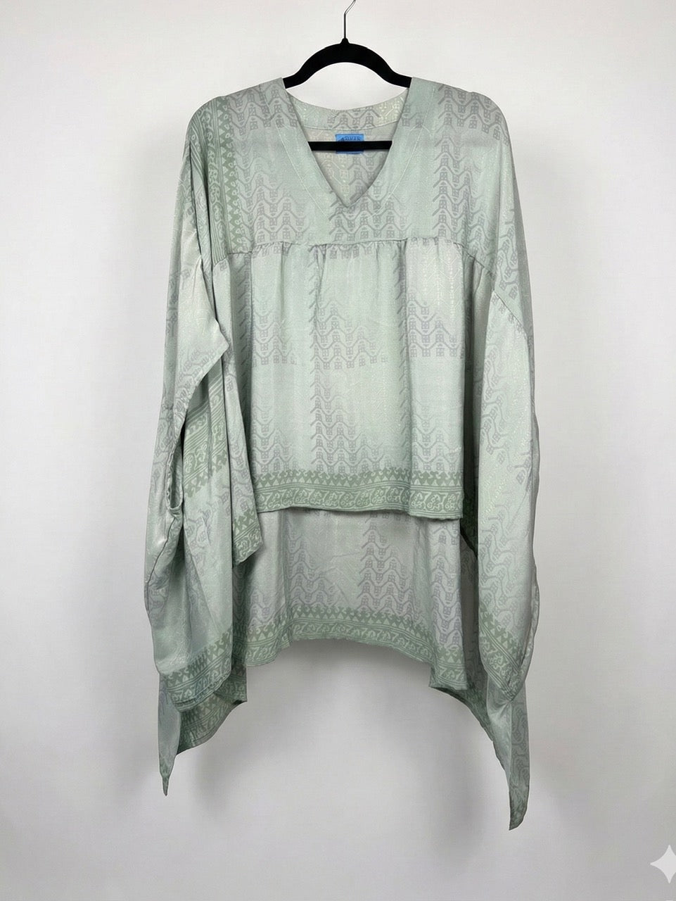 Our vintage styles have lived a full life before becoming the designs in our shop. Fabrics may have small threads or holes in the layers. Color inconsistency or small stains may be present. The saris are sewn together and extend the life of each design. Imperfections should be celebrated.