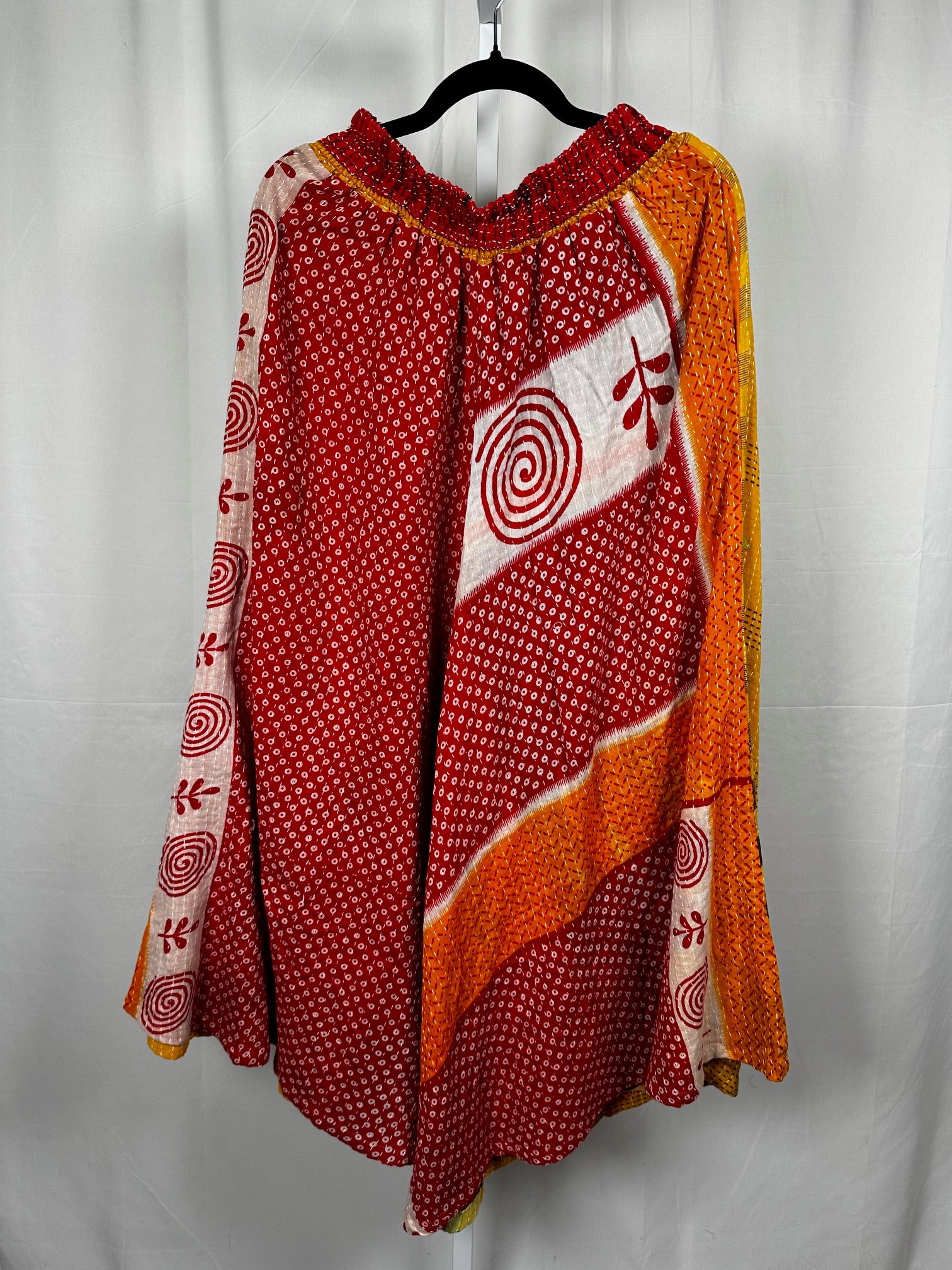 Our vintage styles have lived a full life before becoming the designs in our shop. Fabrics may have small threads or holes in the layers. Color inconsistency or small stains may be present. The saris are sewn together and extend the life of each design. Imperfections should be celebrated.
