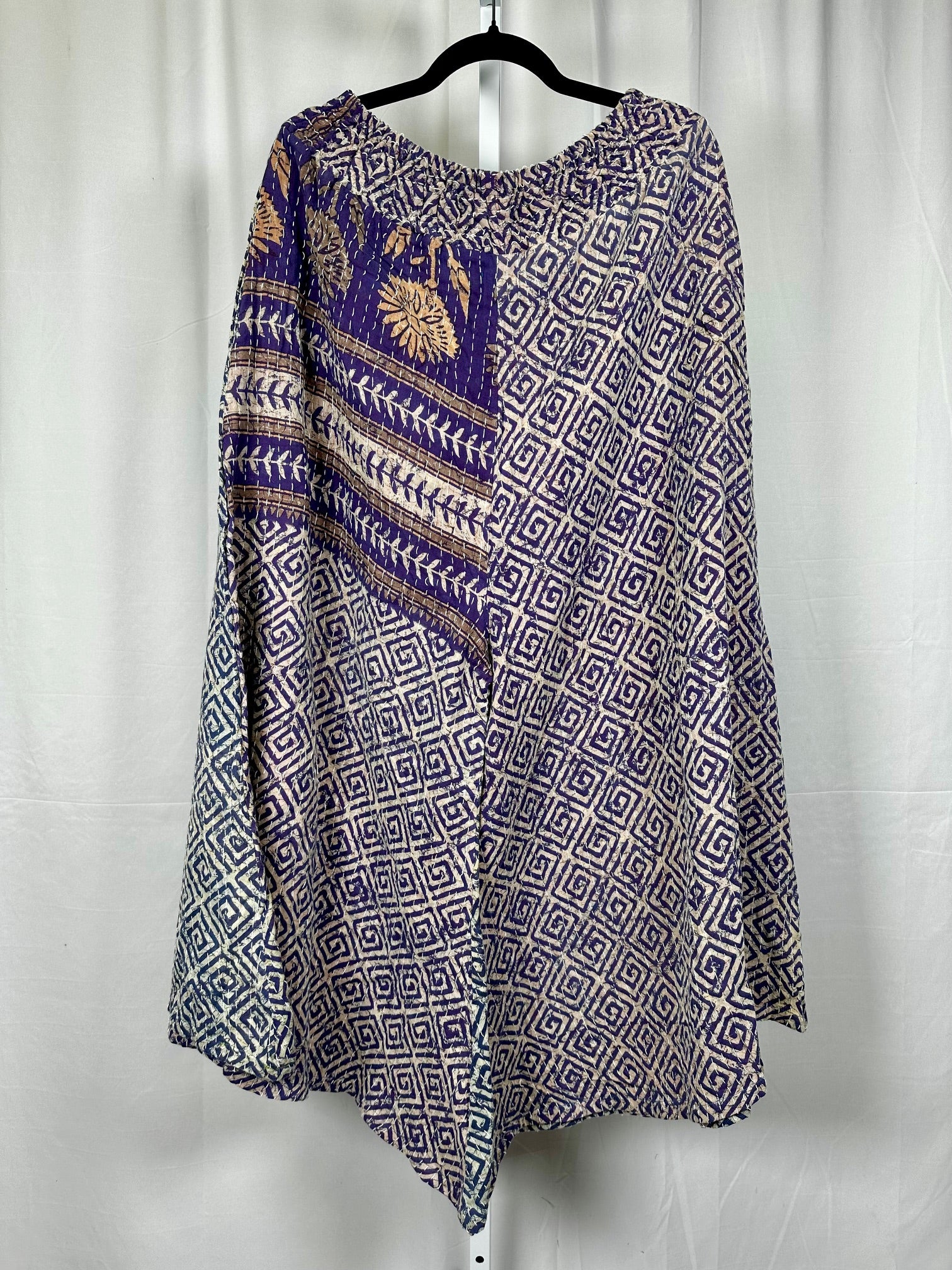 Our vintage styles have lived a full life before becoming the designs in our shop. Fabrics may have small threads or holes in the layers. Color inconsistency or small stains may be present. The saris are sewn together and extend the life of each design. Imperfections should be celebrated.