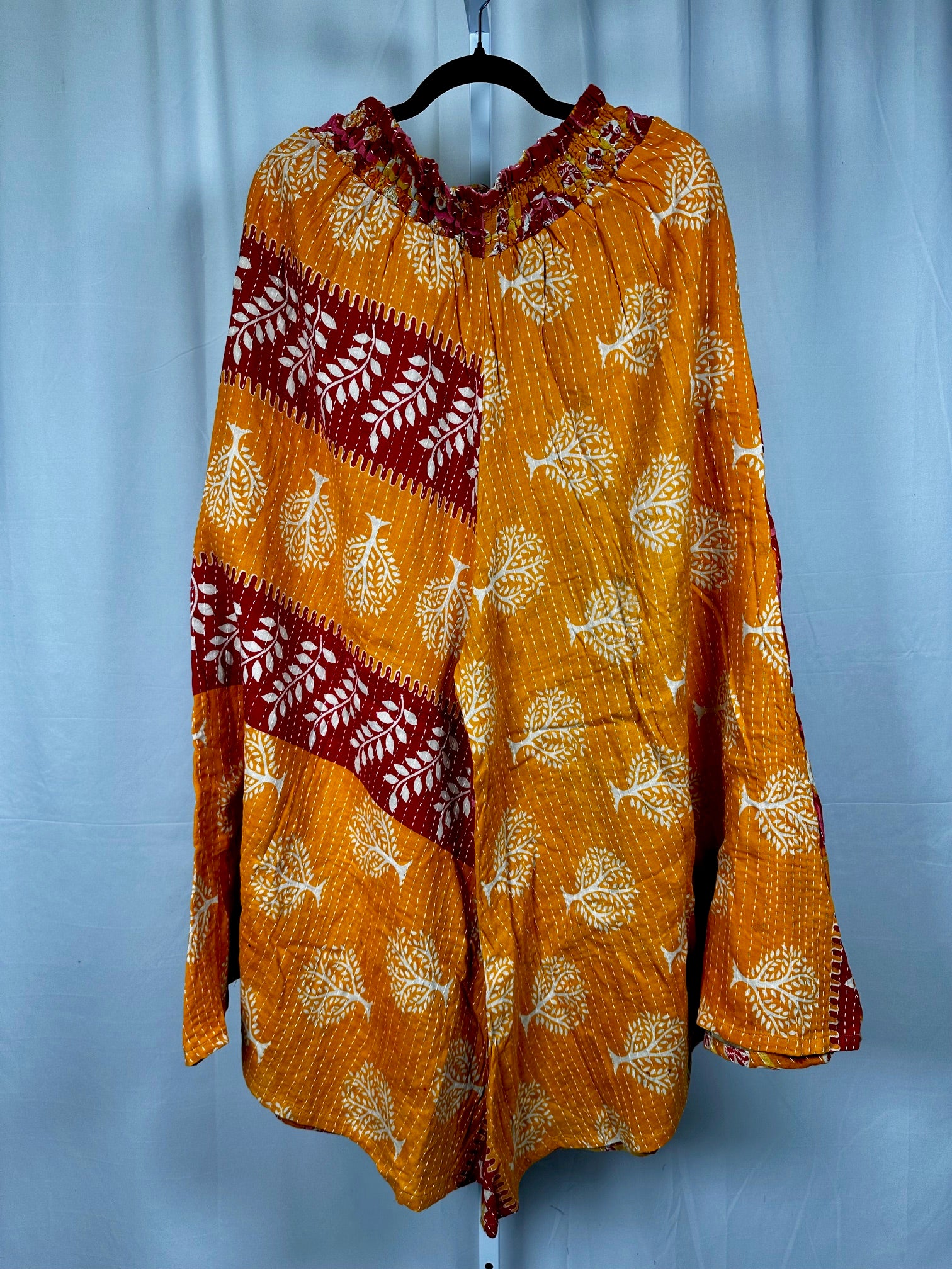 Our vintage styles have lived a full life before becoming the designs in our shop. Fabrics may have small threads or holes in the layers. Color inconsistency or small stains may be present. The saris are sewn together and extend the life of each design. Imperfections should be celebrated.