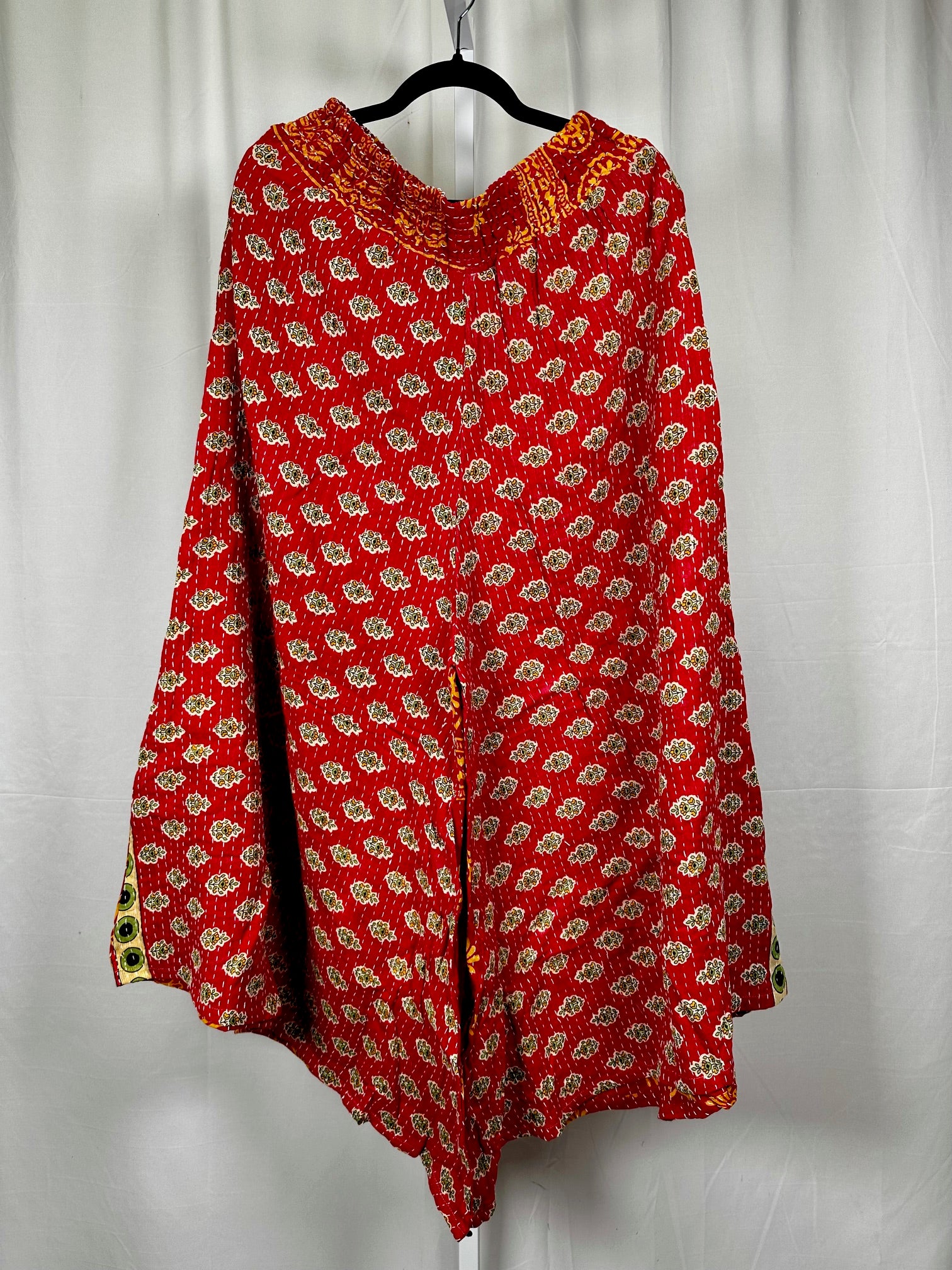 Our vintage styles have lived a full life before becoming the designs in our shop. Fabrics may have small threads or holes in the layers. Color inconsistency or small stains may be present. The saris are sewn together and extend the life of each design. Imperfections should be celebrated.