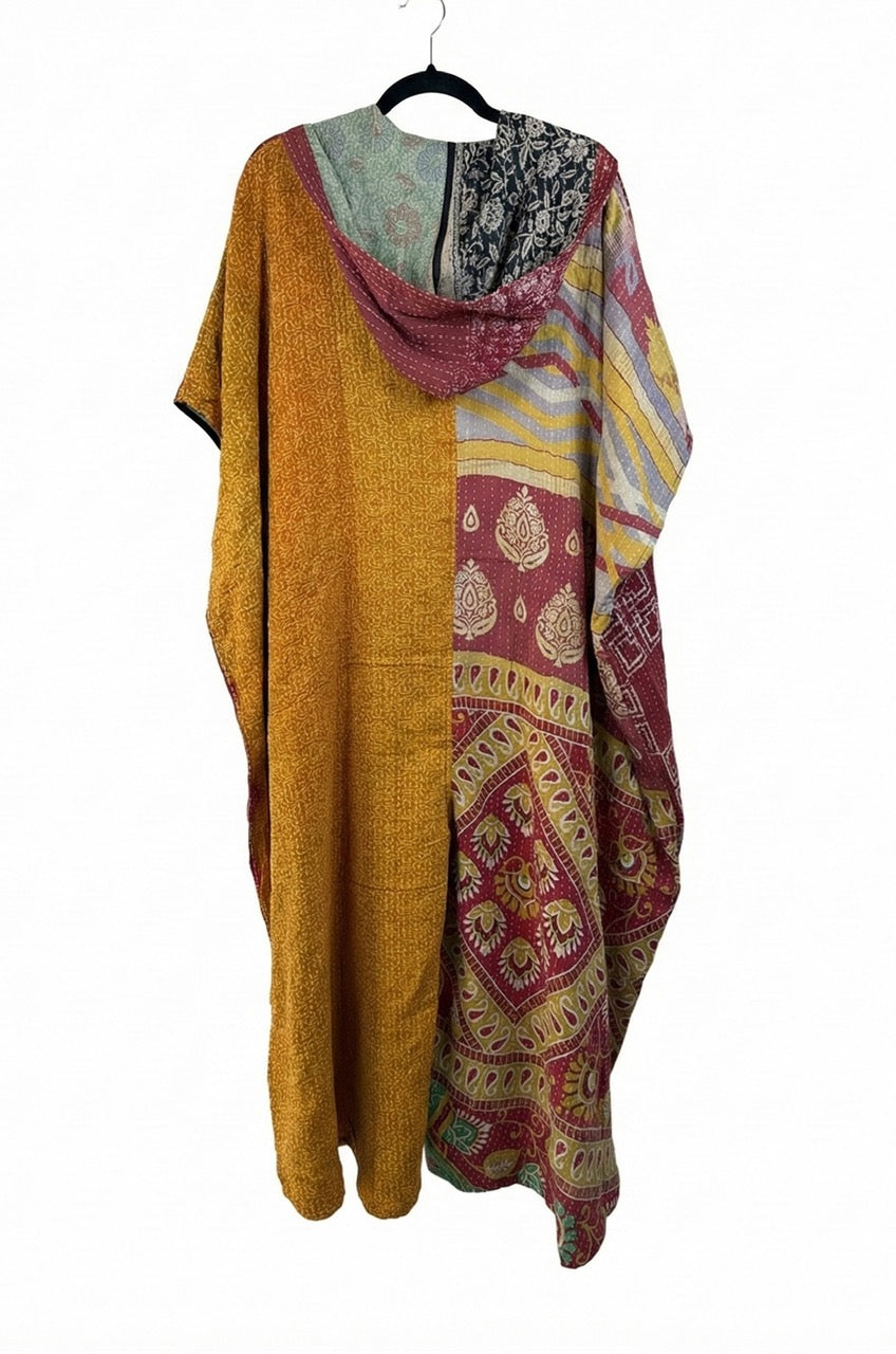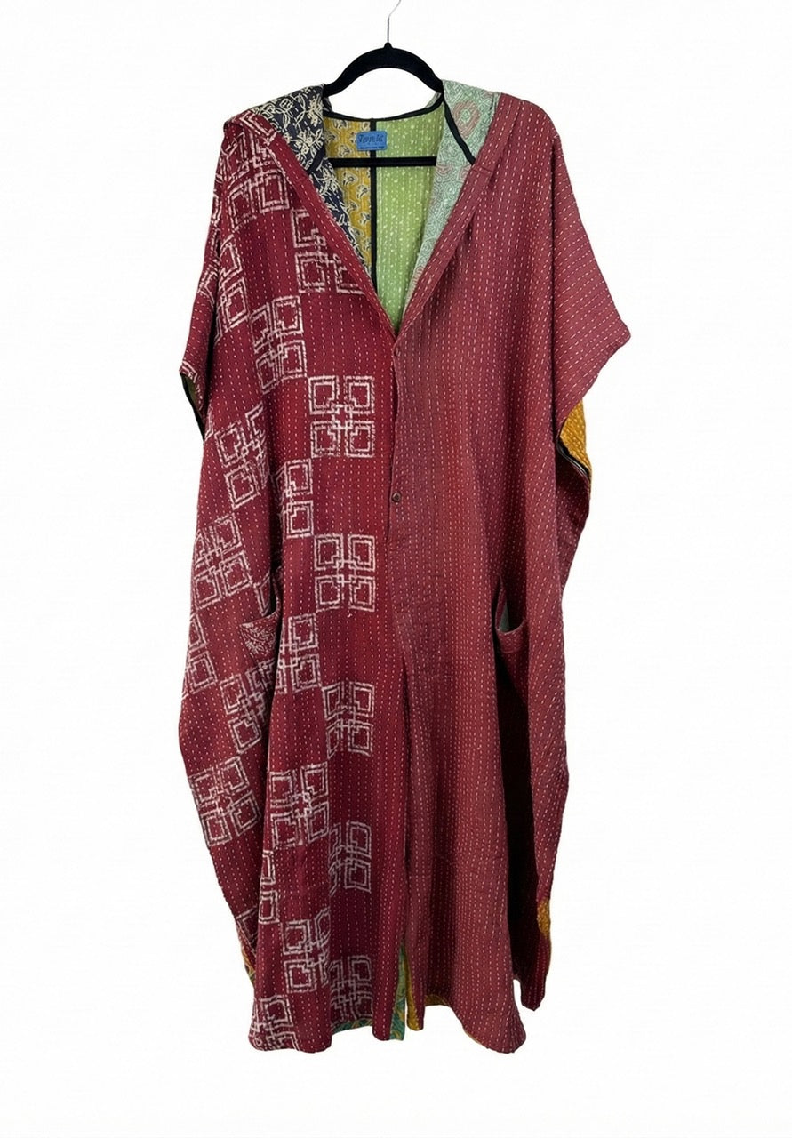 Our vintage styles have lived a full life before becoming the designs in our shop. Fabrics may have small threads or holes in the layers. Color inconsistency or small stains may be present. The saris are sewn together and extend the life of each design. Imperfections should be celebrated.