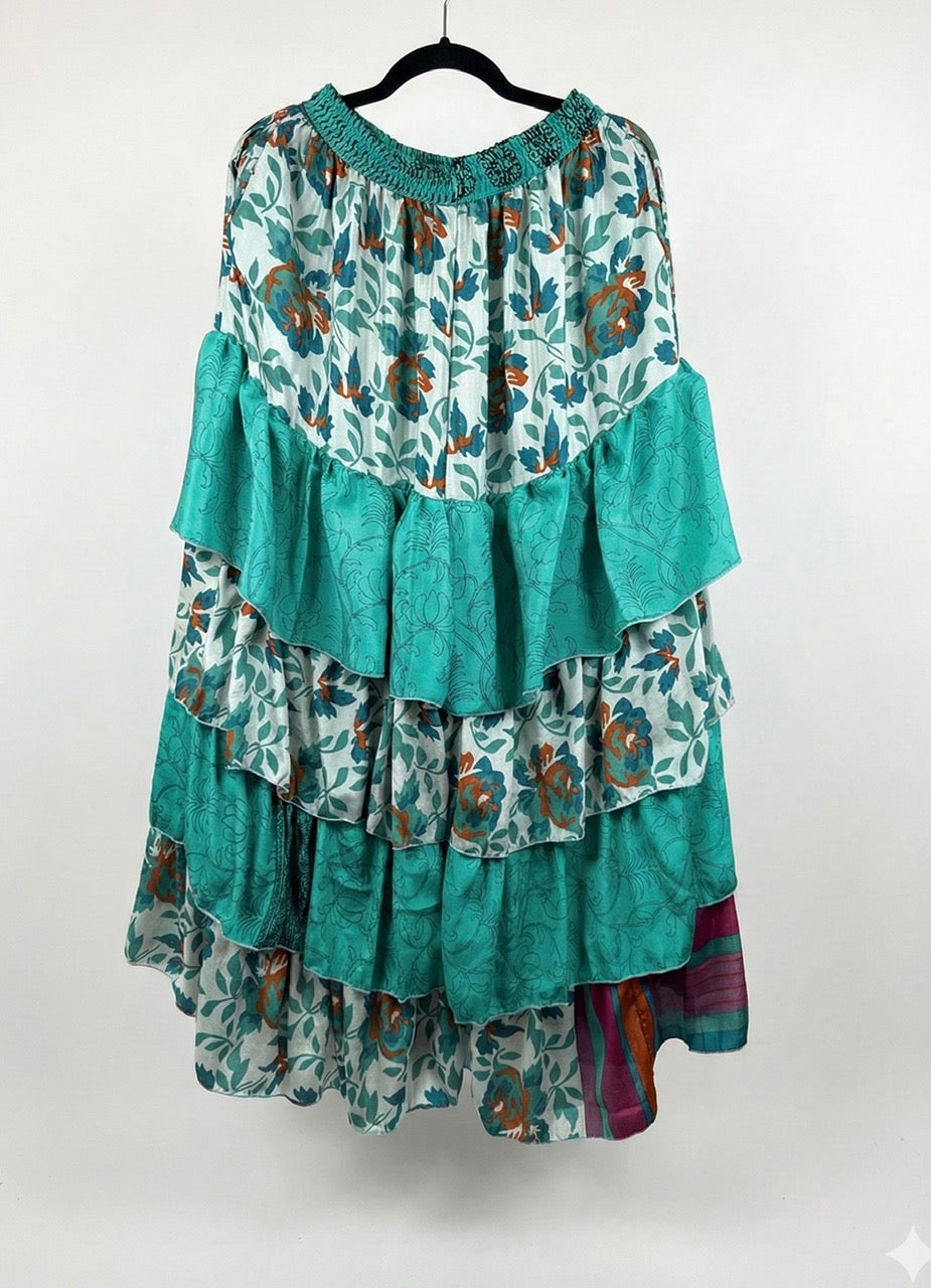 Our vintage styles have lived a full life before becoming the designs in our shop. Fabrics may have small threads or holes in the layers. Color inconsistency or small stains may be present. The saris are sewn together and extend the life of each design. Imperfections should be celebrated.