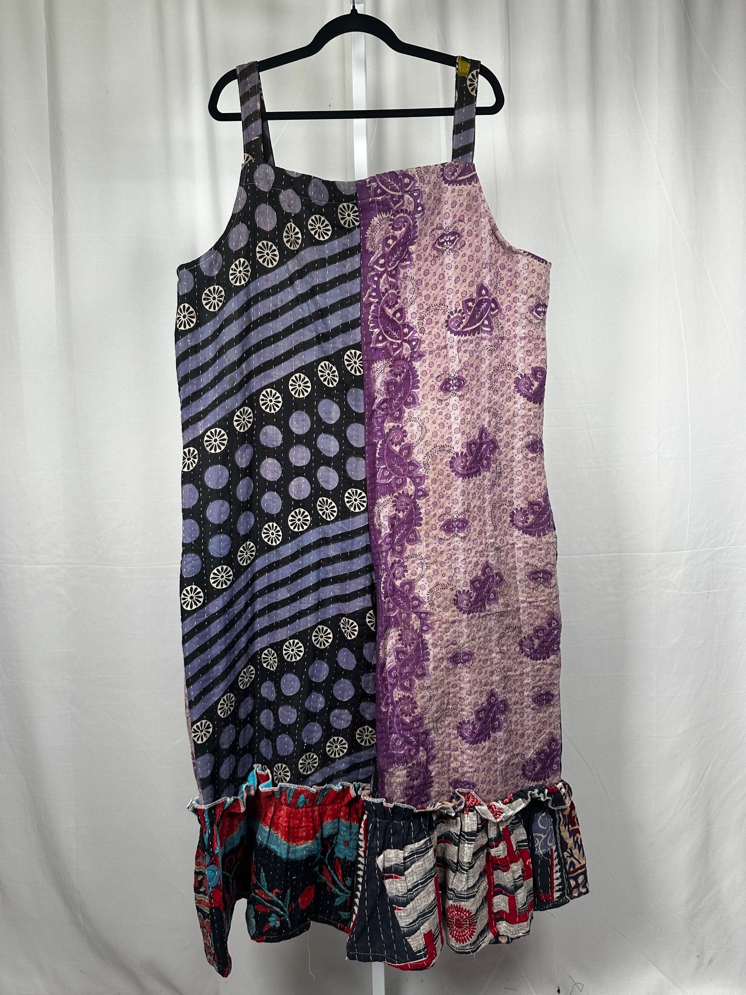 Elevate your style with the Selena ruffle jumpsuit, crafted from authentic vintage sari kantha stitch fabric.