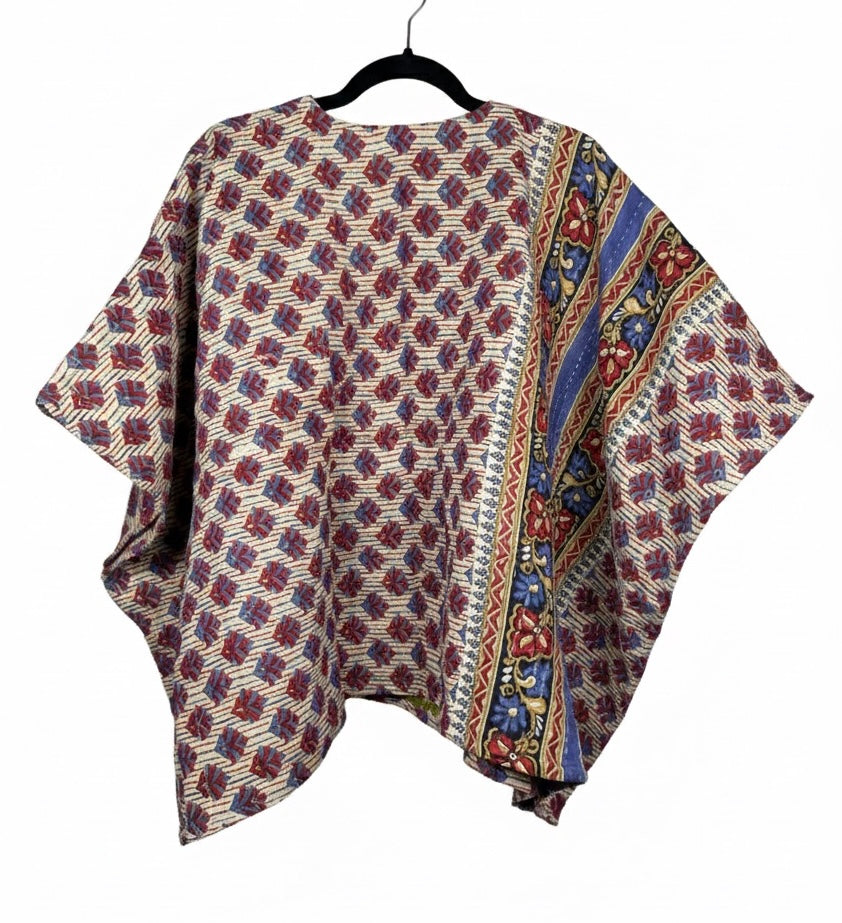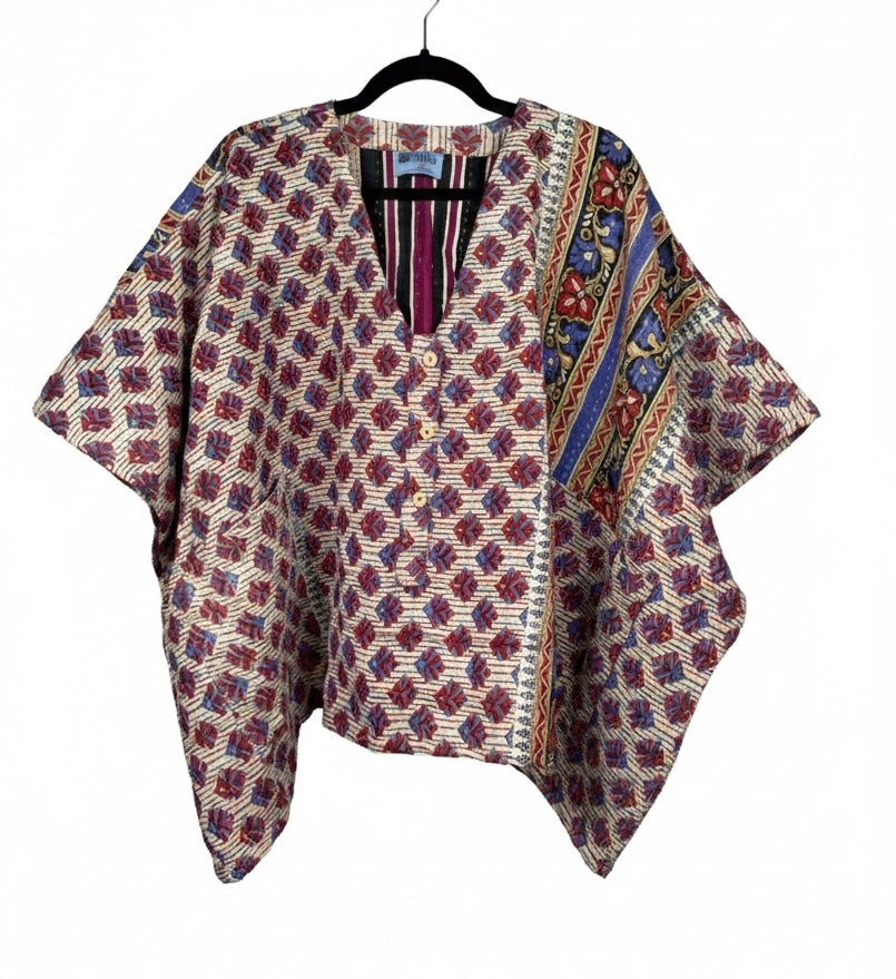Our vintage styles have lived a full life before becoming the designs in our shop. Fabrics may have small threads or holes in the layers. Color inconsistency or small stains may be present. The saris are sewn together and extend the life of each design. Imperfections should be celebrated.