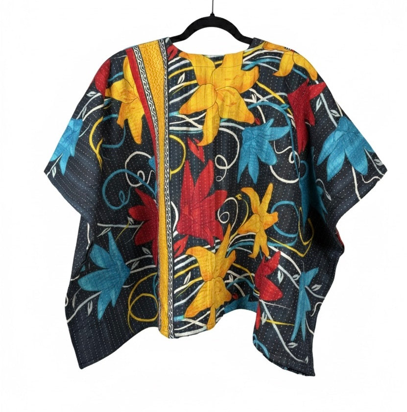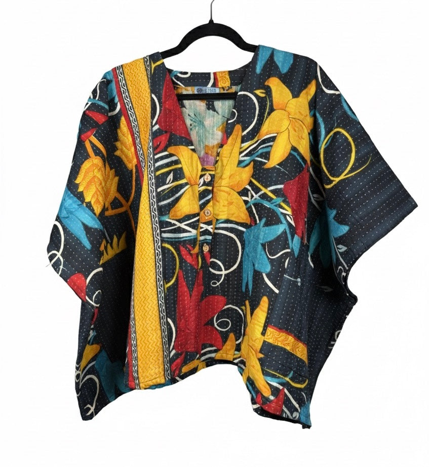 Our vintage styles have lived a full life before becoming the designs in our shop. Fabrics may have small threads or holes in the layers. Color inconsistency or small stains may be present. The saris are sewn together and extend the life of each design. Imperfections should be celebrated.