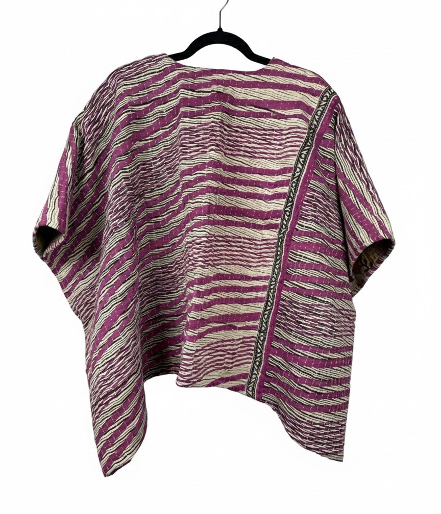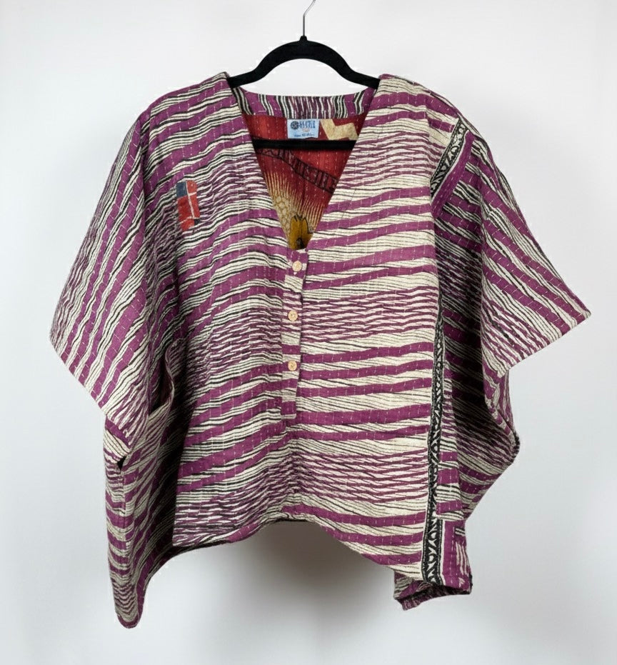 Our vintage styles have lived a full life before becoming the designs in our shop. Fabrics may have small threads or holes in the layers. Color inconsistency or small stains may be present. The saris are sewn together and extend the life of each design. Imperfections should be celebrated.