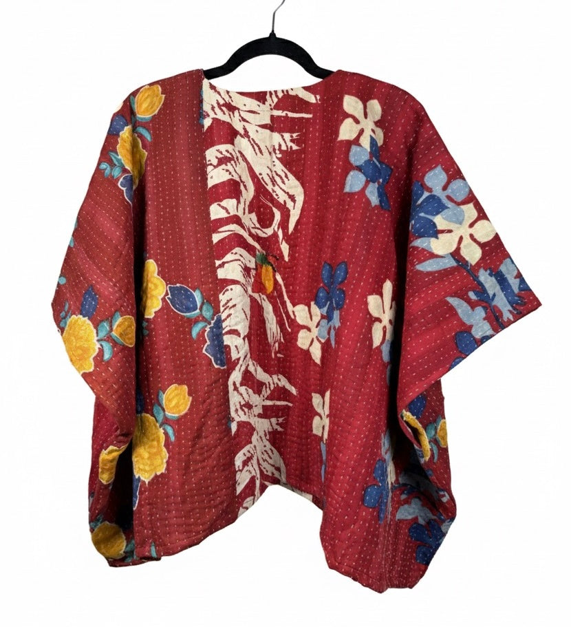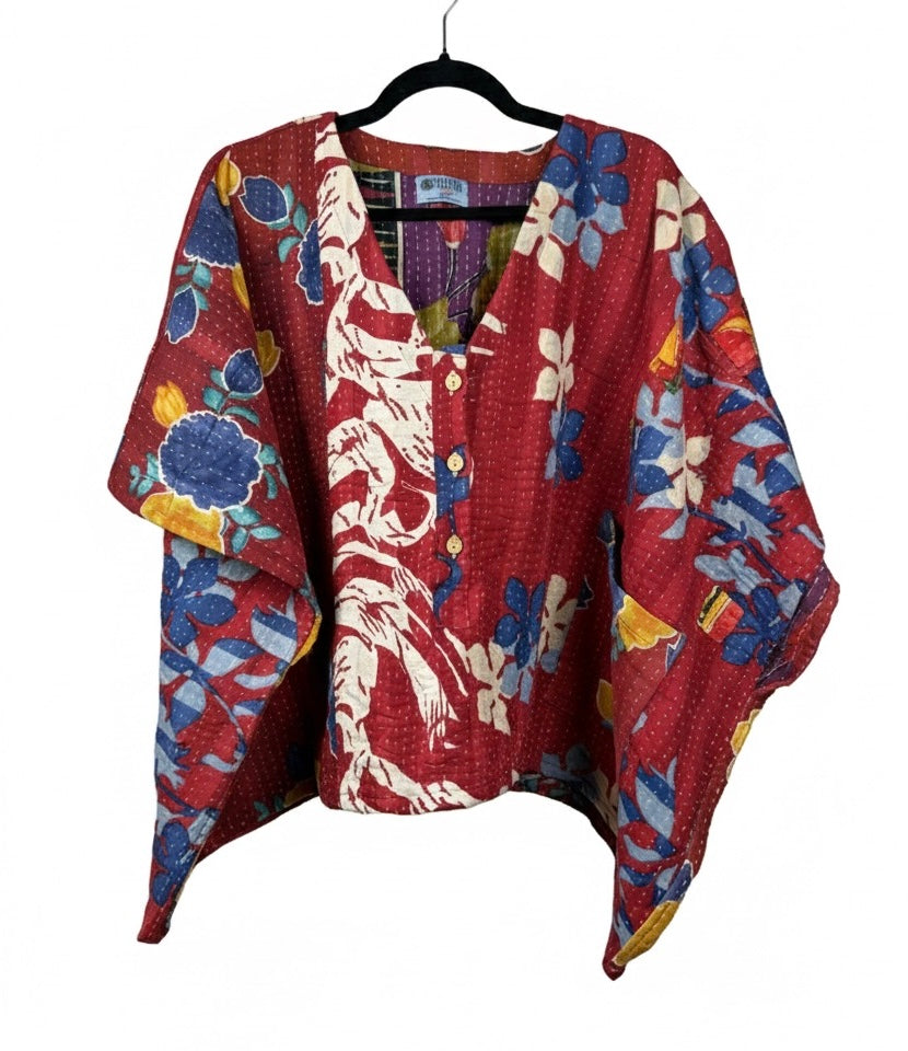 Our vintage styles have lived a full life before becoming the designs in our shop. Fabrics may have small threads or holes in the layers. Color inconsistency or small stains may be present. The saris are sewn together and extend the life of each design. Imperfections should be celebrated.