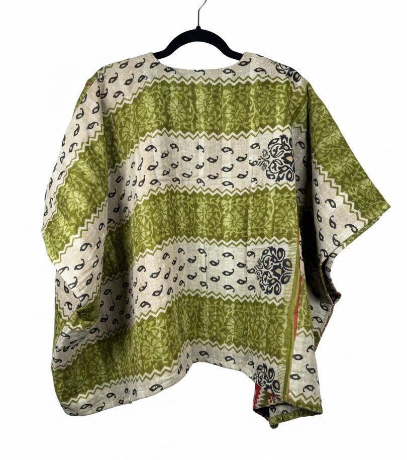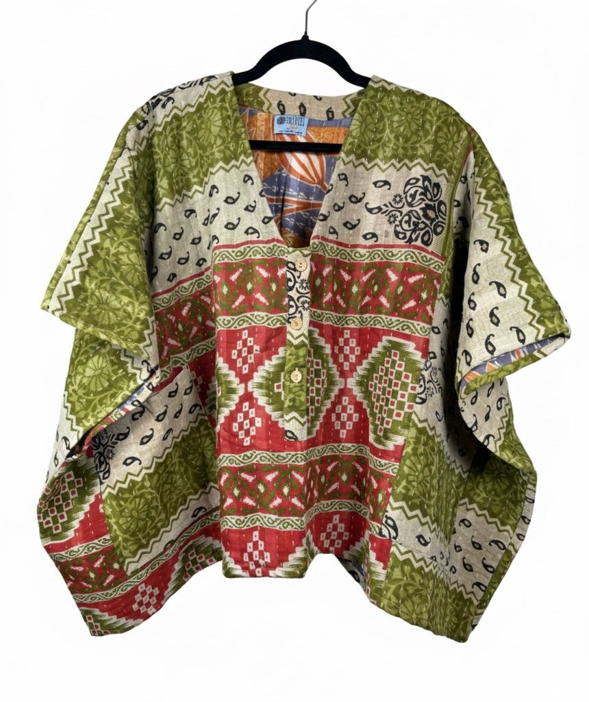 Our vintage styles have lived a full life before becoming the designs in our shop. Fabrics may have small threads or holes in the layers. Color inconsistency or small stains may be present. The saris are sewn together and extend the life of each design. Imperfections should be celebrated.