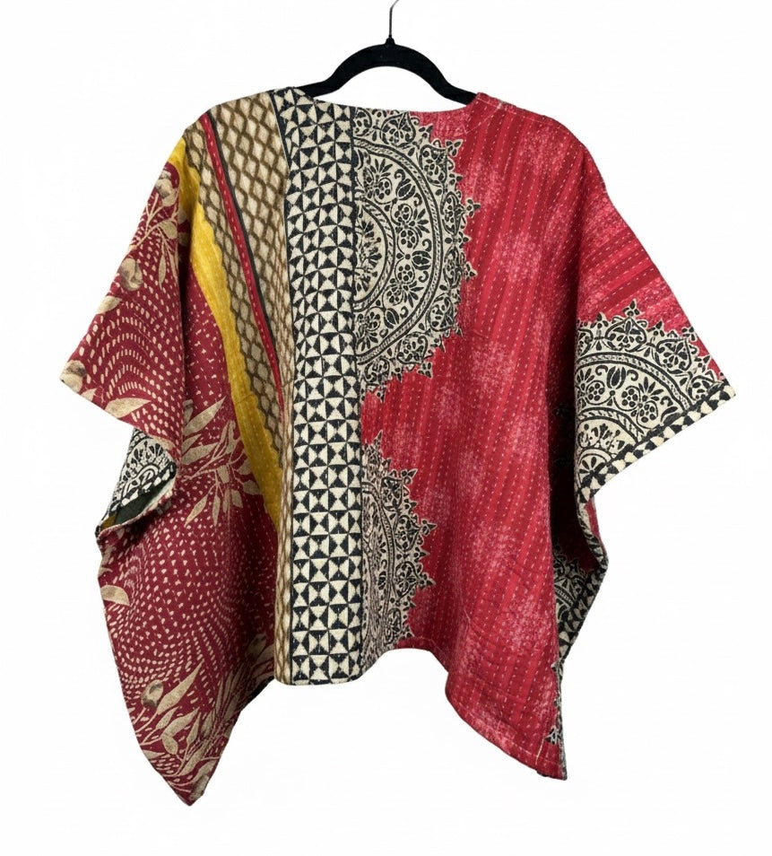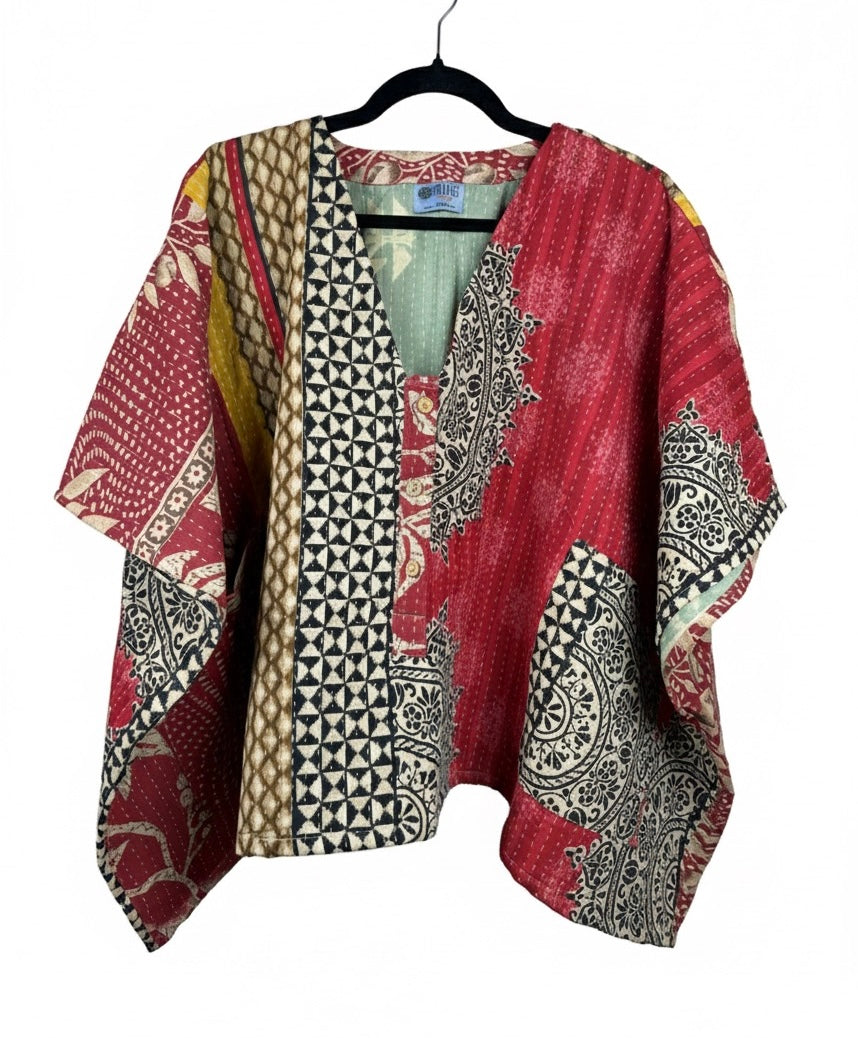 Our vintage styles have lived a full life before becoming the designs in our shop. Fabrics may have small threads or holes in the layers. Color inconsistency or small stains may be present. The saris are sewn together and extend the life of each design. Imperfections should be celebrated.