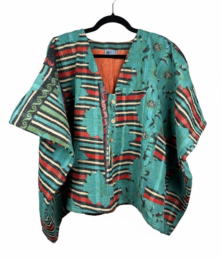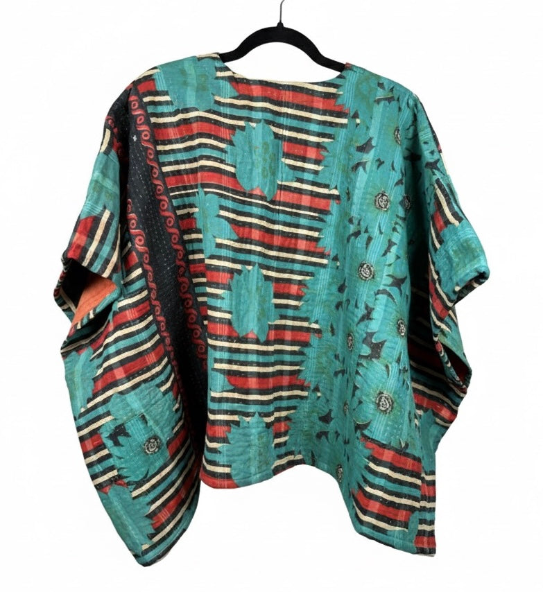 Our vintage styles have lived a full life before becoming the designs in our shop. Fabrics may have small threads or holes in the layers. Color inconsistency or small stains may be present. The saris are sewn together and extend the life of each design. Imperfections should be celebrated.