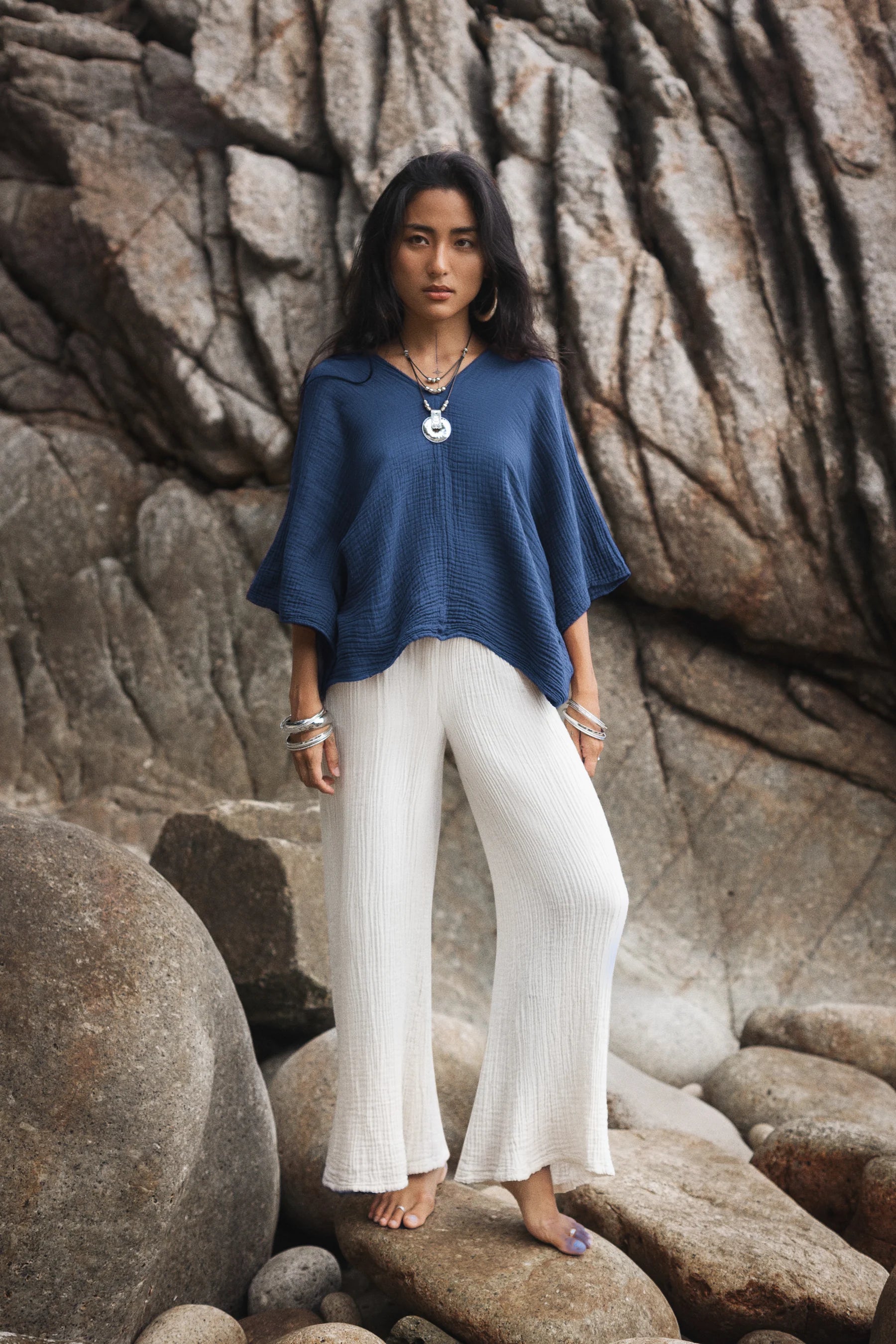 Each one is hand-dyed after being sewn, resulting in a unique color variation.