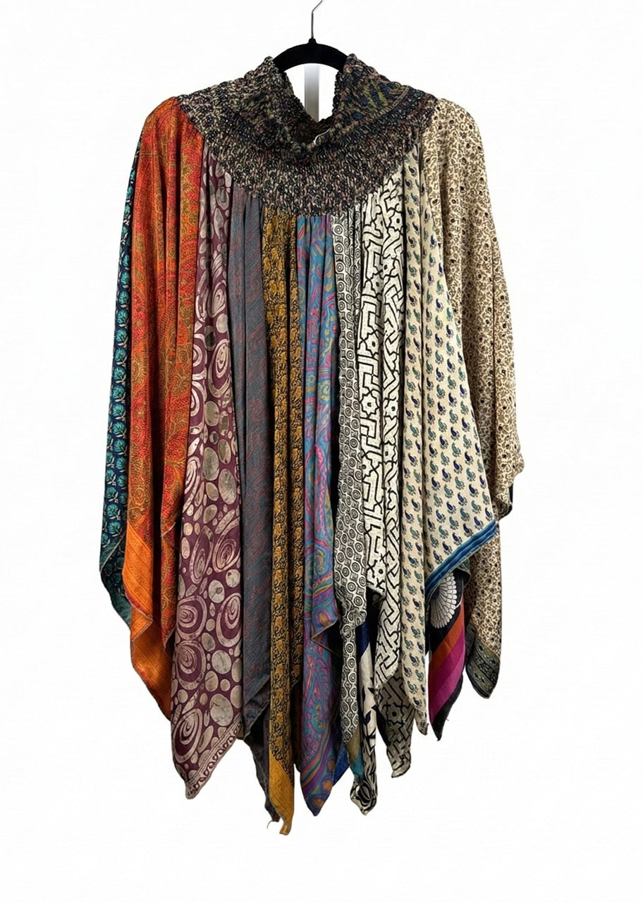 Our vintage styles have lived a full life before becoming the designs in our shop. Fabrics may have small threads or holes in the layers. Color inconsistency or small stains may be present. The saris are sewn together and extend the life of each design. Imperfections should be celebrated.