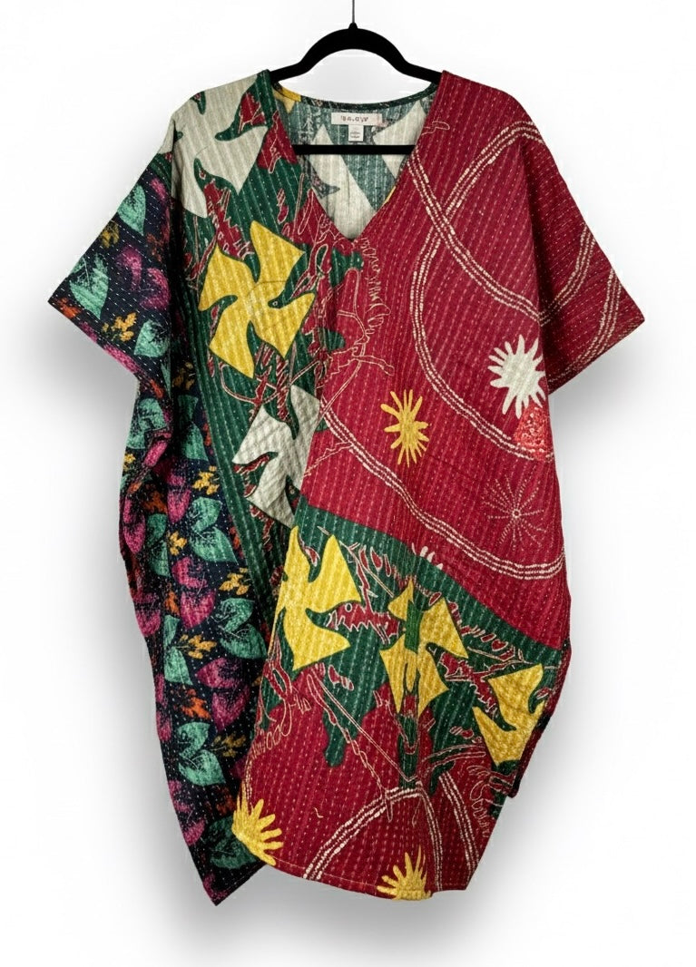 Our vintage styles have lived a full life before becoming the designs in our shop. Fabrics may have small threads or holes in the layers. Color inconsistency or small stains may be present. The saris are sewn together and extend the life of each design. Imperfections should be celebrated.